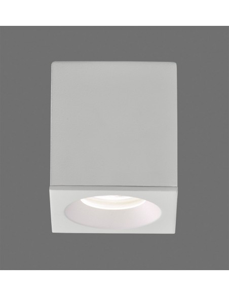 ’Branco’ belongs to the collection of outdoor ceiling lights due to its main characteristic of IP 54 protection that guarantees resistance against the entry of water and dust. This ceiling lamp has a metal structure that is available in three different finishes: textured white, chrome or satin nickel. It measures 8x8cm, and its light source is 1x10W GU10 LED bulb (not included).