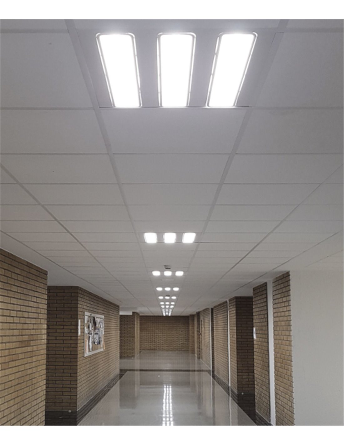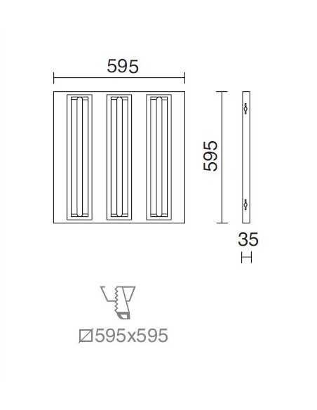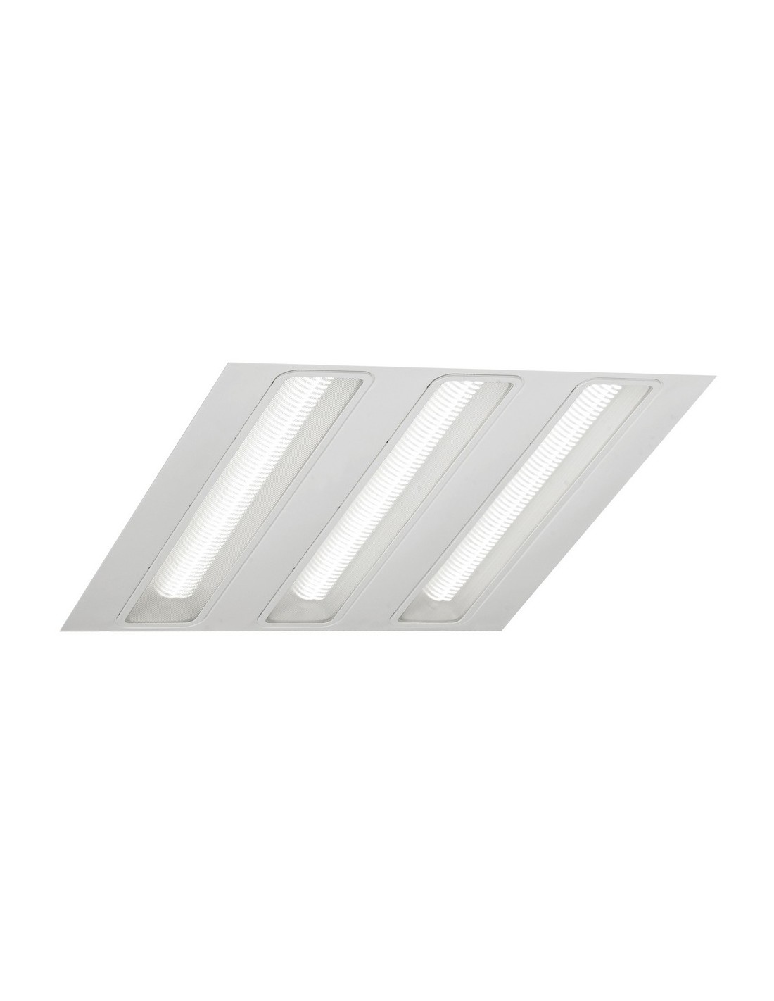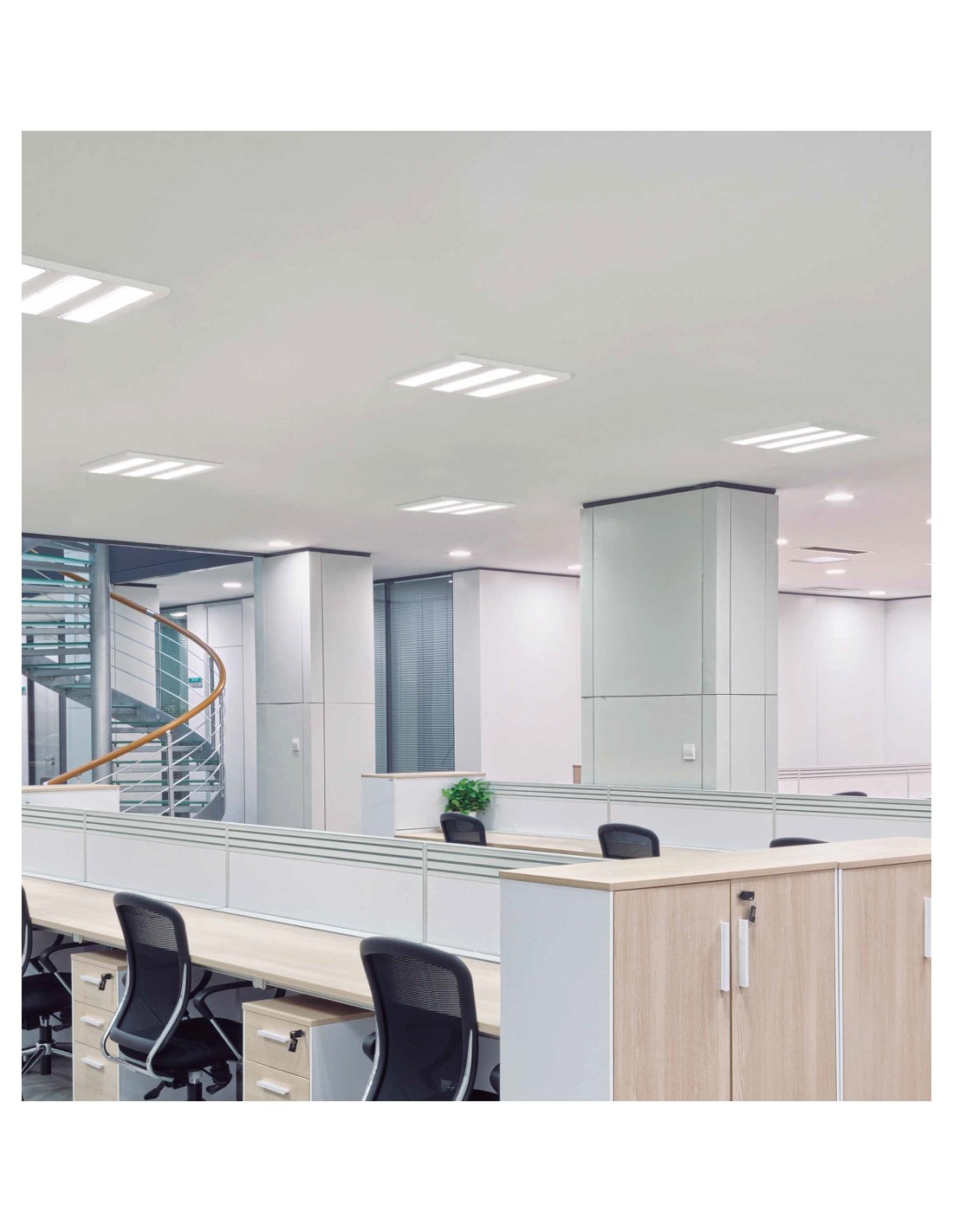 The ceiling light ‘Mab’ for modular suspended ceilings has all the necessary characteristics to become a perfect option to illuminate any office, workspace or any general working environment. Its Push system is one of its greatest qualities as it allows a choice of regulation depending on your needs. It also allows the adjustment between 3000K and 4000K colour temperature (warmer and colder light). This 60x60cm ceiling recessed lamp has a low degree of glare, and it used LED technology of 45W 3939/4210lm.