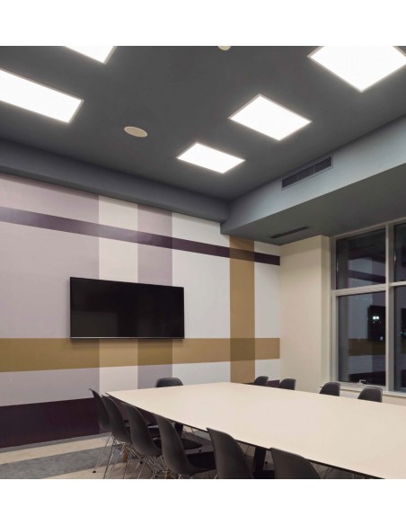 This is a recessed LED lamp for modular false ceilings, available in a dimmable Dali or Push version. It stands out for its square 60x60 cm format with a low degree of glare. This type of light is highly recommended for offices, classrooms and other work areas where it provides adequate light so as not to tire the eyes. There is also a choice of colour temperature between 3000K (warm light) and 4000K (cool light). The integrated light source is LED SMD 42W 3700/3900lm.