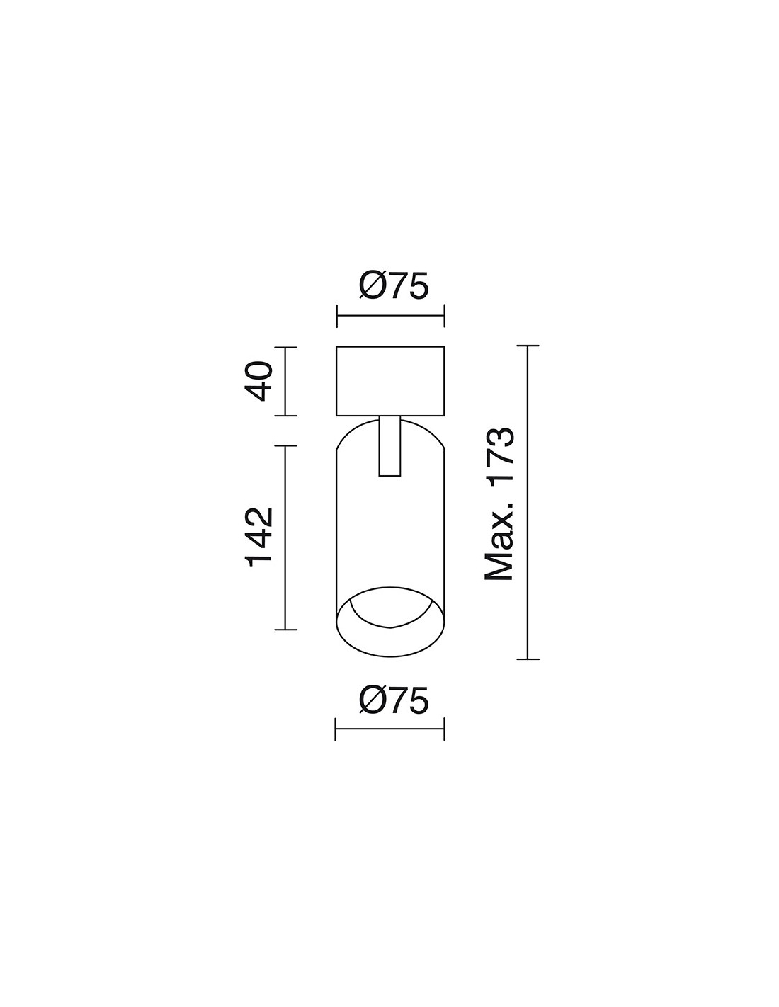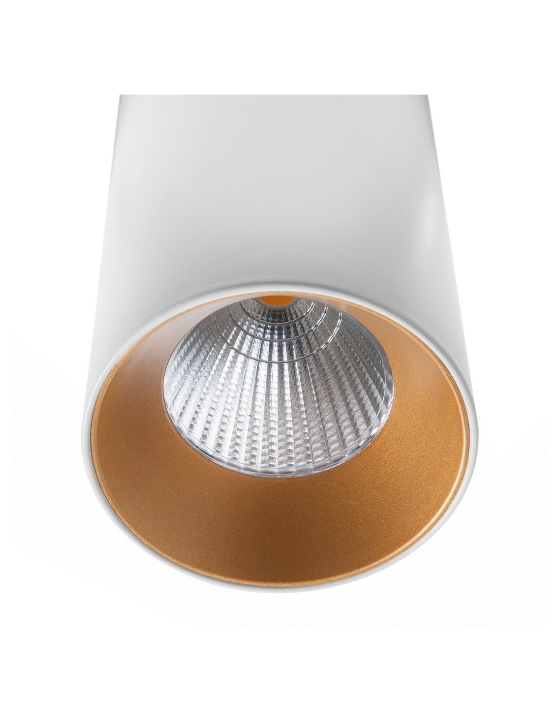 ’Hidra’, a collection from the Spanish lighting company ‘Grupo Novolux’, presents this cylindrical ceiling lamp made from white-finished aluminium. It can be used in a fully vertical position to directly illuminate the area beneath at an angle of 30º or up to a maximum tilt of 90º. It has a maximum angle of rotation of 350º, and it is perfect to illuminate from any position. Its versatility means it can be used as a lighting source in shops or shop windows, as well as being used in homes as a living room or hallway lamp. It is worth noting that this model allows you to modify the finish of the trim between silver, gold and black depending on which best suits your needs. Its light source is integrated LED technology with 18W consumption, 1575lm of luminous power, a colour temperature of 3000K (warm light) and a life span of 40,000 hours. It measures 17.3cm in height, 7.5cm in diameter, 14.2cm in length and it weighs 0.65kg.