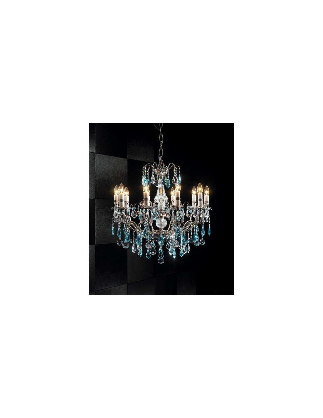 - Premium series chandelier – Copenlamp – Blue finish, Brass with crystals ceiling pendant