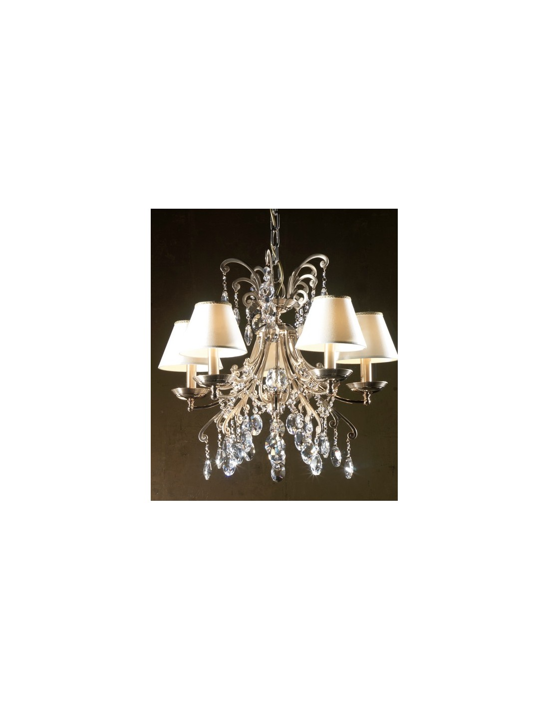 Metallic ceiling made with brass and optic crystal of the highest quality adapted to LED technology, and comply with CE, CCC, SASO, CU TR, and CoC standards. Shades included.