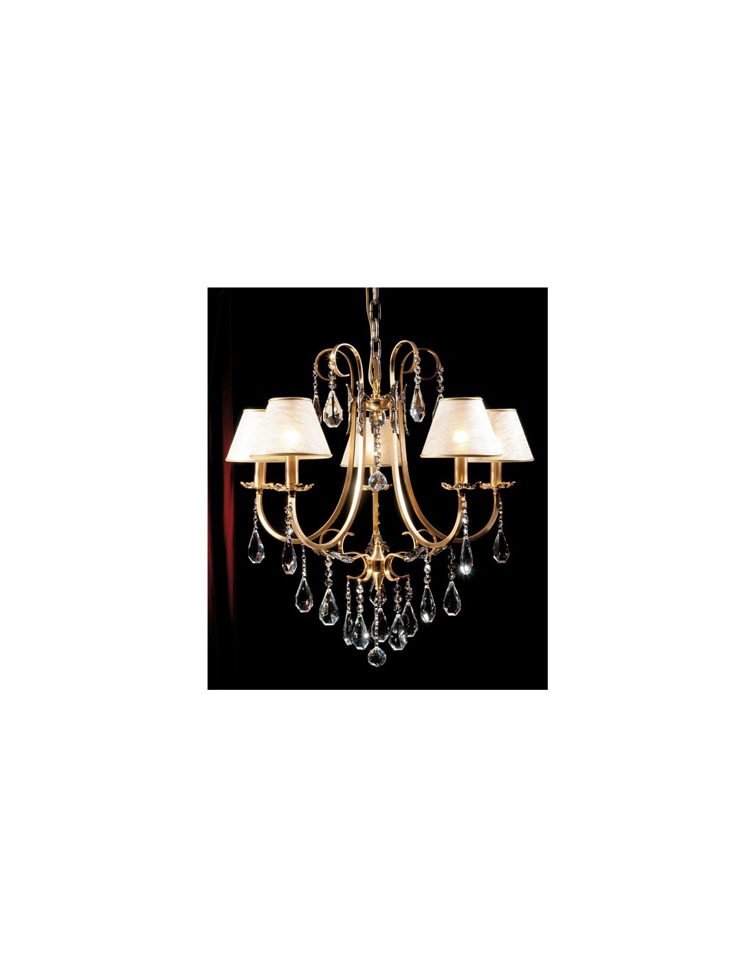Metallic chandelier made with brass and Asfour crystal of the highest quality, adapted to LED technology and complying with CE, CCC, SASO, CU TR, and CoC standards. Asfour crystal is synonymous with quality, excellent purity, brightness, and resistance, with a perfect fit that combines design with innovation. Shades included.