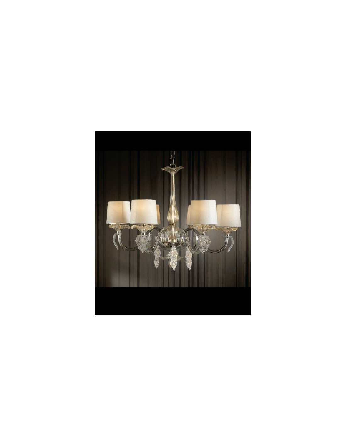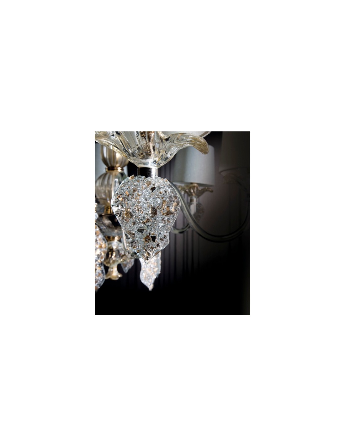 Crystal chandelier made with Murano crystal of the highest quality, adapted to LED technology and complying with CE, CCC, SASO, CU TR and CoC standards. Murano crystal is handcrafted by master glassmakers of Murano and embellished with the addition of 24K gold leaf. Shades included.