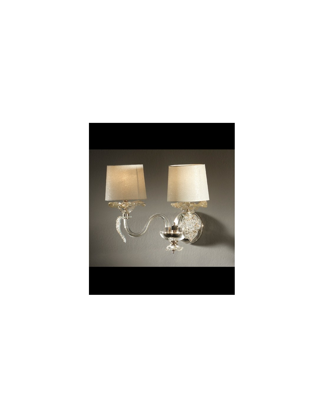 Crystal wall lamp made with Murano crystal of the highest quality, adapted to LED technology and complying with CE, CCC, SASO, CU TR and CoC standards. Murano crystal is handcrafted by master glassmakers of Murano and embellished with the addition of 24K gold leaf. Shade included.