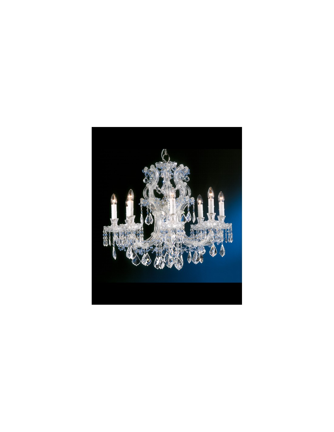 Mª Teresa chandelier made with Asfour crystal of the highest quality, adapted to LED technology and complying with CE, CCC, SASO, CU TR and CoC standards. Asfour crystal is synonymous with quality, excellent purity, brightness and resistance, with a perfect fit that combines design with innovation.