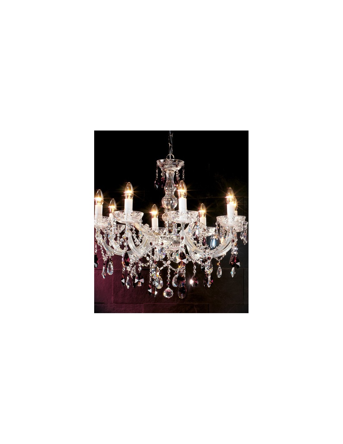 Mª Teresa chandelier made with Asfour crystal of the highest quality, adapted to LED technology and complying with CE, CCC, SASO, CU TR and CoC standards. Asfour crystal is synonymous with quality, excellent purity, brightness and resistance, with a perfect fit that combines design with innovation.