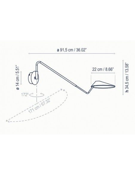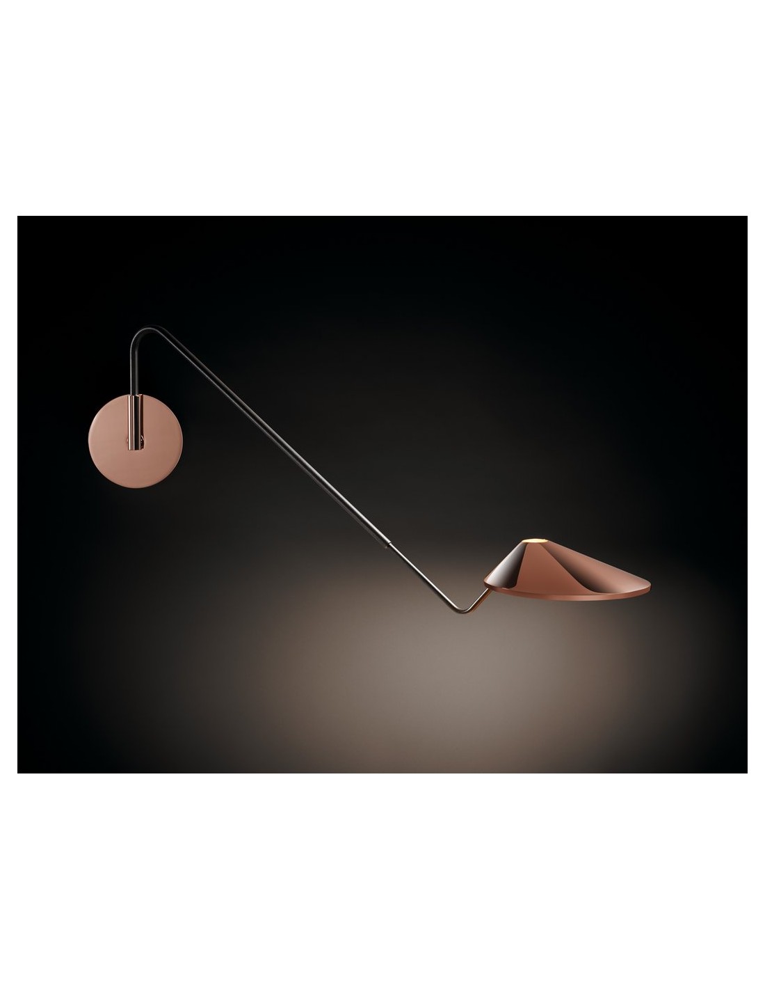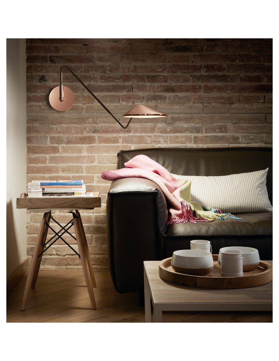 Lamp inspired by the typical Vietnamese hats, from which it also takes its name. The screen of this wall lamp has a characteristic triangular shape that is so characteristic of the entire "Nón Lá" collection. In addition, its modern structure is made up of different varieties of metal such as aluminium or cast iron, gives as a result a resistant and high-quality product. The arm of this product is graphite coloured and the screen is finished in an elegant satin copper. The arm of the ‘Nón Lá’ wall lamp can be easily moved to facilitate the projection of light, for this reason it is recommended in places where reading or studying is frequent. The light source of this wall lamp is LED 10,5W 1200lm 2700K. The complete turn is produced around 172º. This lamp can be regulated through the Triac system or through the proxy dimmer switch.