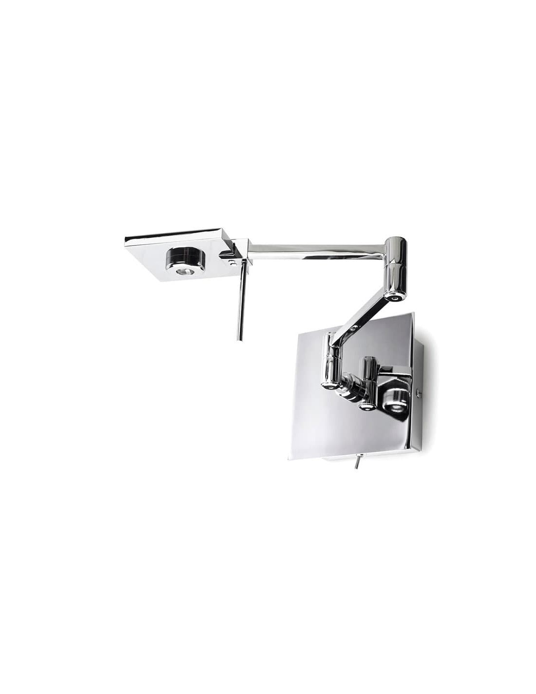 With this wall light, Pujol Iluminación introduces an easy and functional solution for illuminating that reading nook or providing subtle ambient lighting. Del, with its articulated arm, easily adjusts to the desired position at any time. Moreover, its modern and appealing aesthetics stem from its aluminium and steel structure finished in chrome, featuring a square, flat head. The lamp comes equipped with a switch. Its light source is a 5W LED with 500lm output and a 3000K color temperature (included).