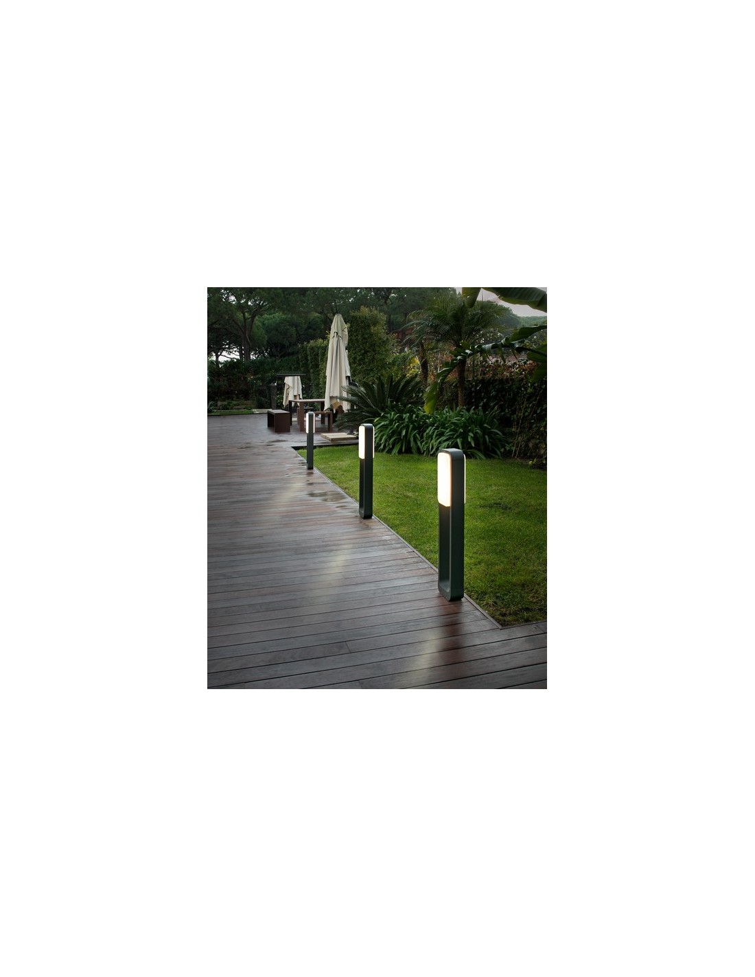 Sticker is an outdoor bollard designed by Lúcid, ideal for illuminating gardens, pathways and outdoor walkways. Its modern dark grey design is characterised by straight lines with slightly rounded edges. At the top of the lamp is a diffuser that projects a warm LED light, creating a cosy and safe atmosphere.