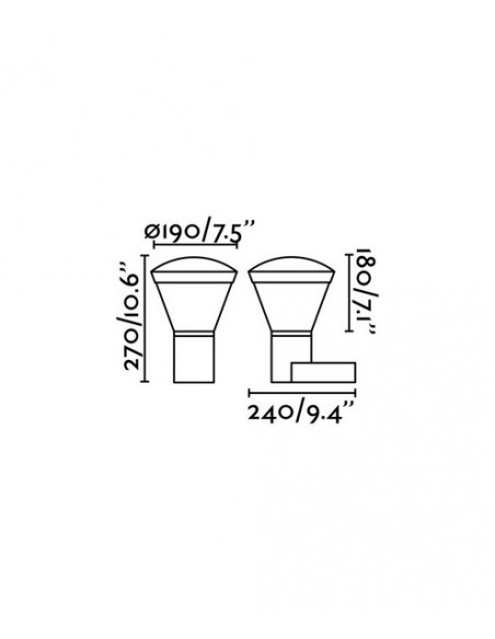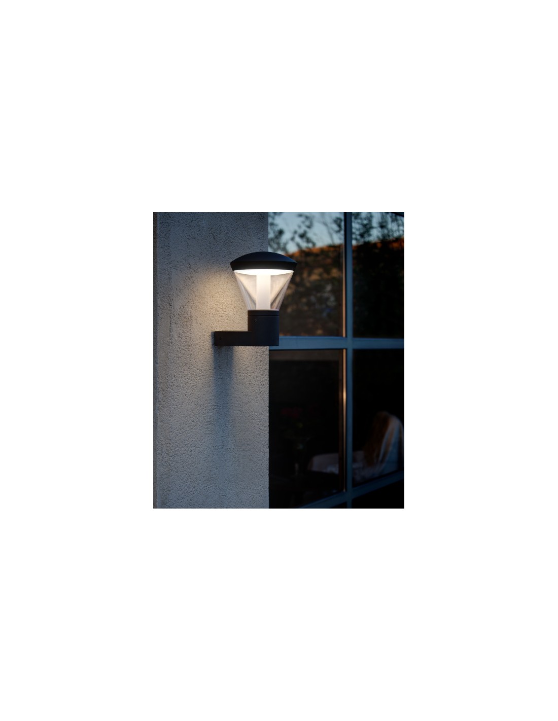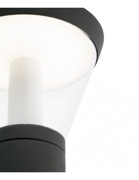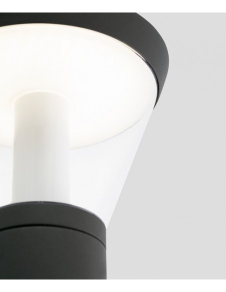Shelby is a set of lamps created by Conillas for outdoor lighting, characterised by the use of LED technology and a wide diffuser that distributes the light evenly, providing efficient and elegant illumination. The light source of the wall lamp is a 10W SMD LED, which emits 600 lumens of warm light with a colour temperature of 3000K, and is integrated into the lamp.