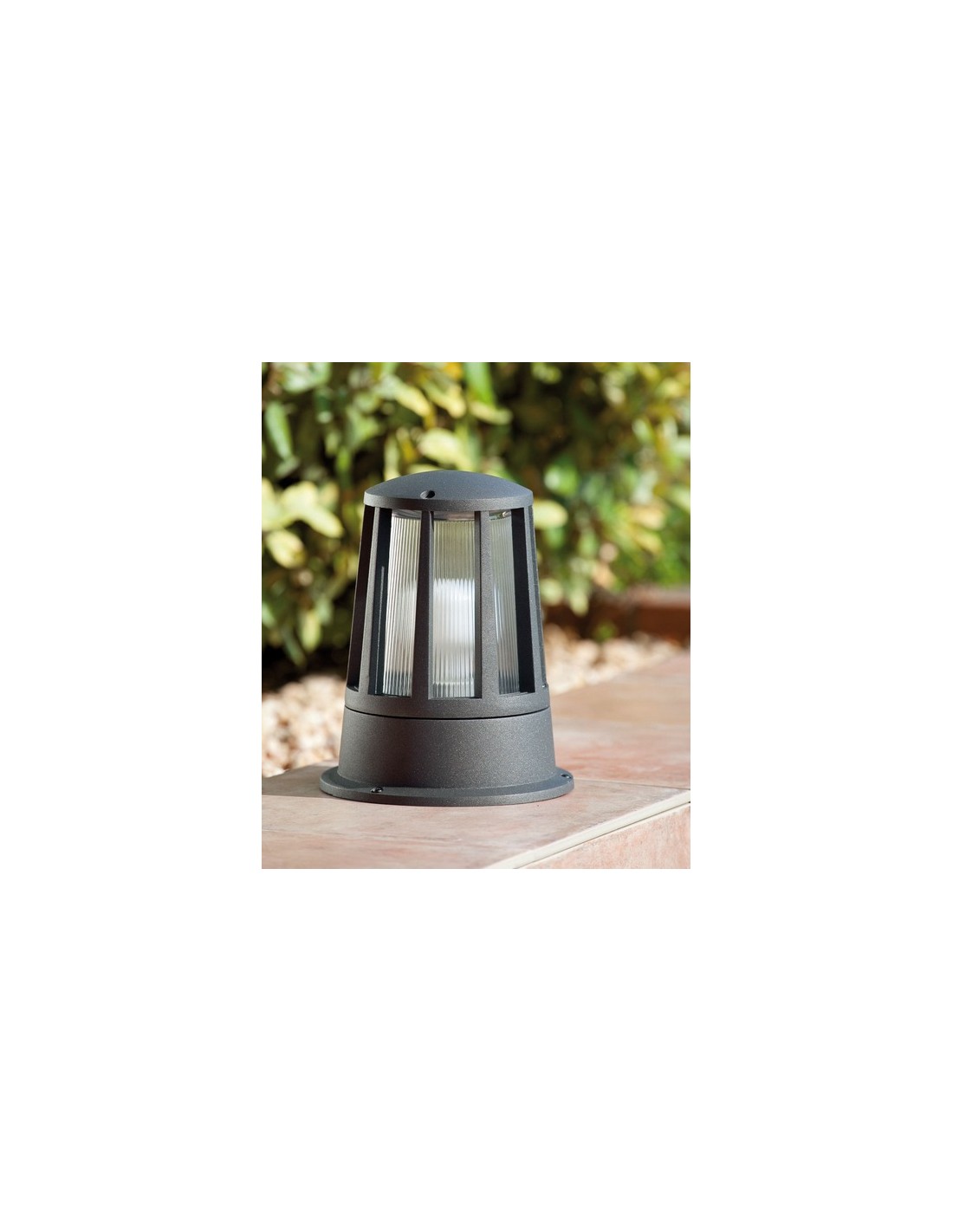 Modern outdoor beacon made from aluminium die casting with a translucent glass diffuser.