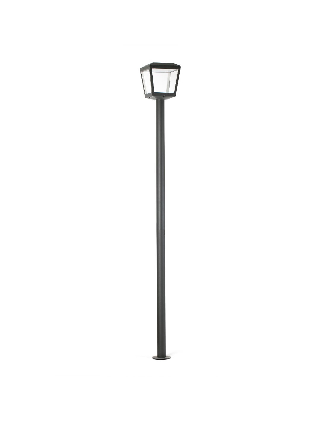 PLAZA is a modern pole lamp for terraces and gardens that uses LED technology. The lantern is 220 in high and made from metal with a transparent polycarbonate diffusor.