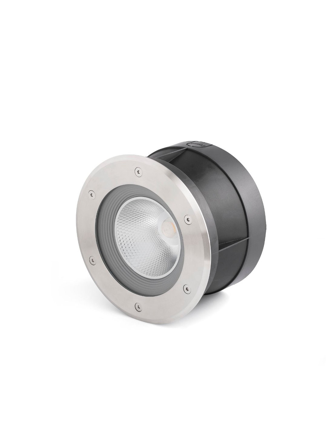 LED recessed lamp with a beam angle of 60° for garden and terrace lighting, built in 316 stainless steel and glass. The light source is 24W COB LED and warm light. Flush mount box and driver are included. This LED floor-recessed lamp is ideal for creating guide lights which highlight the paths in gardens and building areas. This luminaire features IP67 that gives high protection against rain and solids. It comes with IK08 shock resistance. Permits vehicle passage up to 1000Kg.