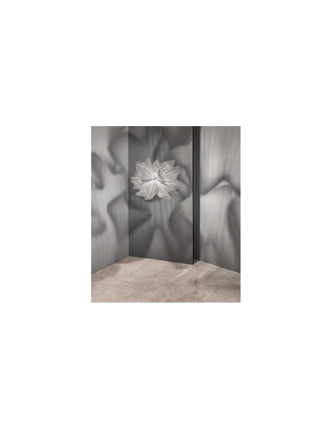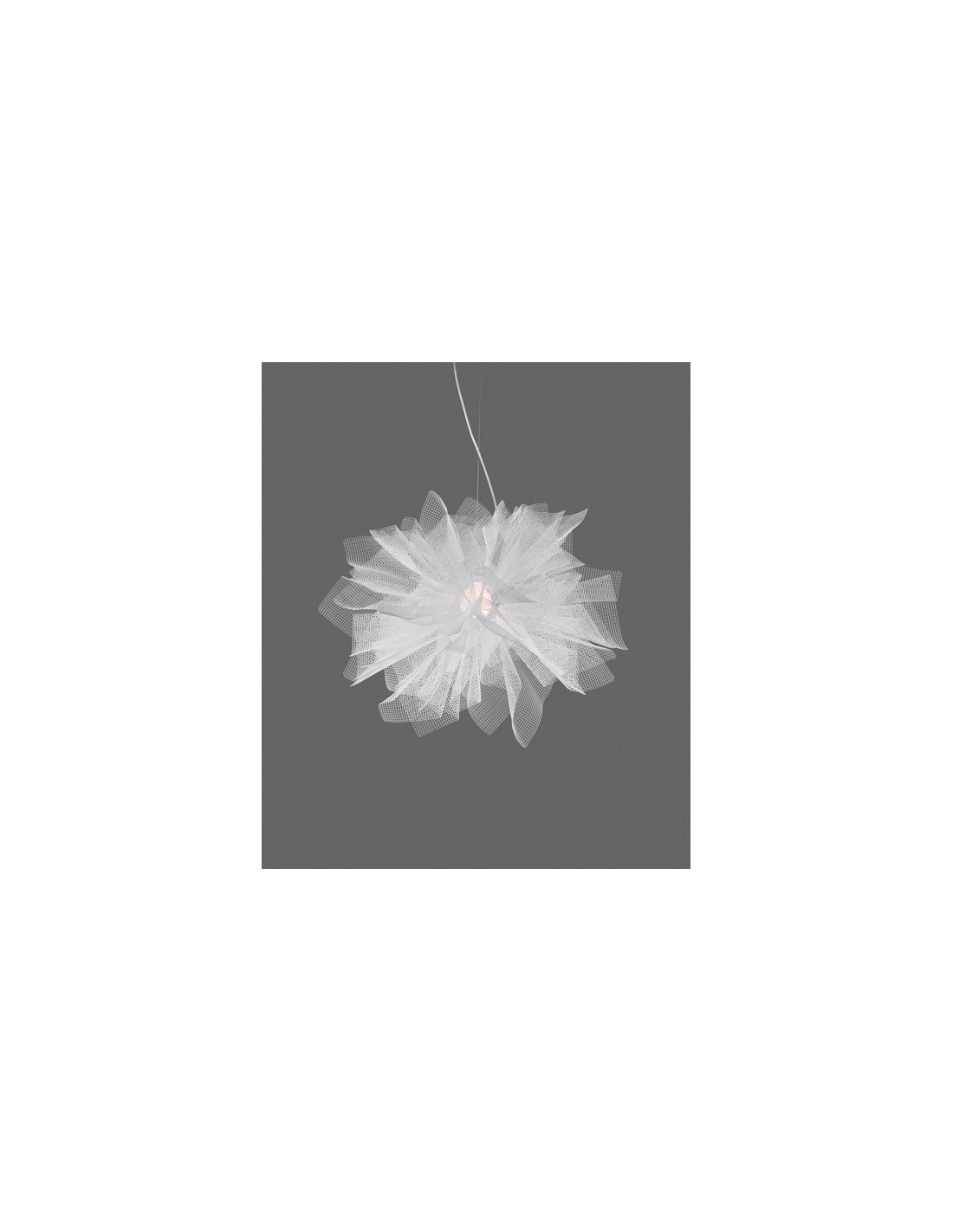 Fluo belongs to a collection of pendant lamps created with galvanized steel mesh veils unified around a single point of light. A lightweight and vaporous design awarded in 2009 with the Good Design Award. Its diameter is Ø 80 cm and its light source is LED E27 230V Max. 1x12W (not included).