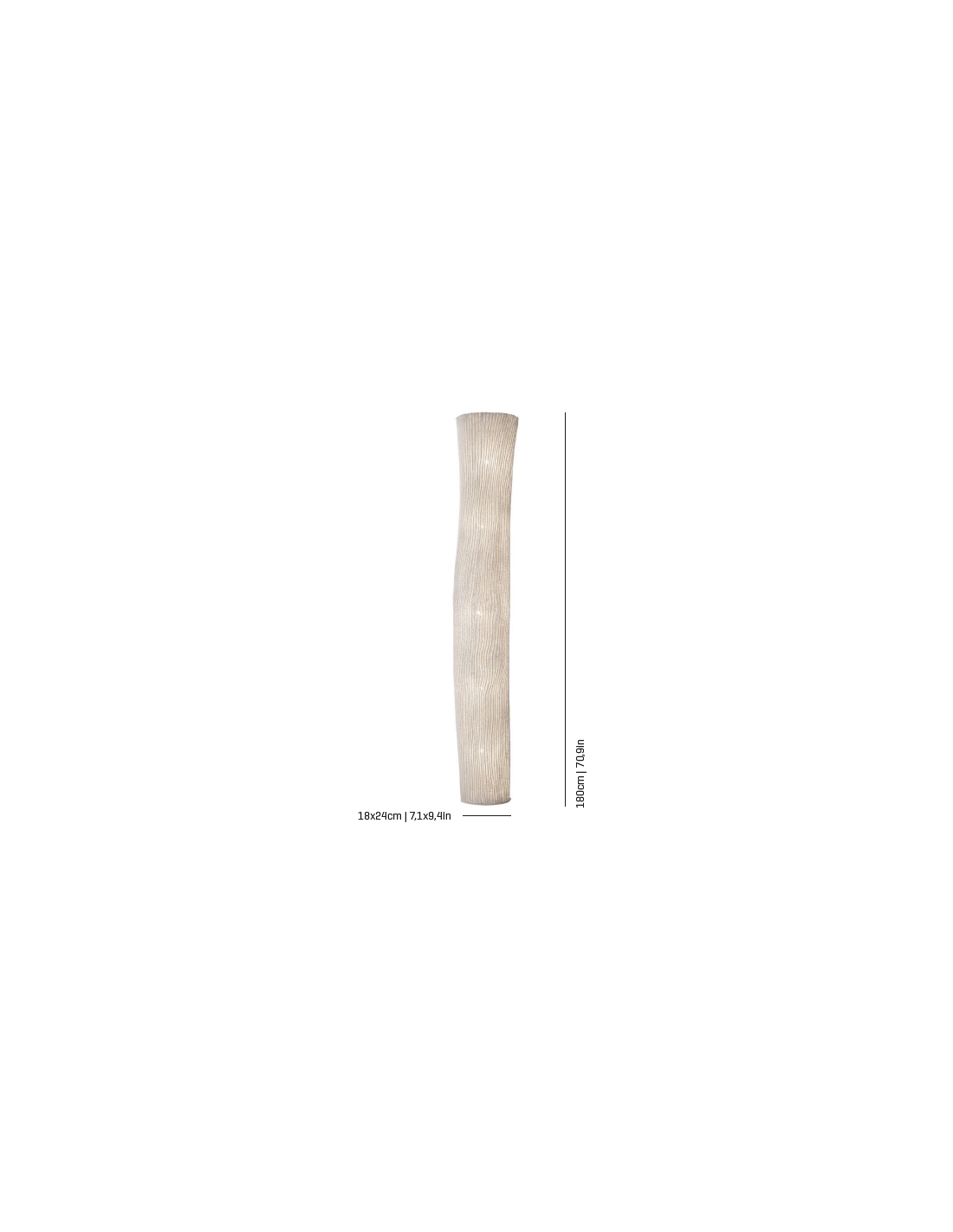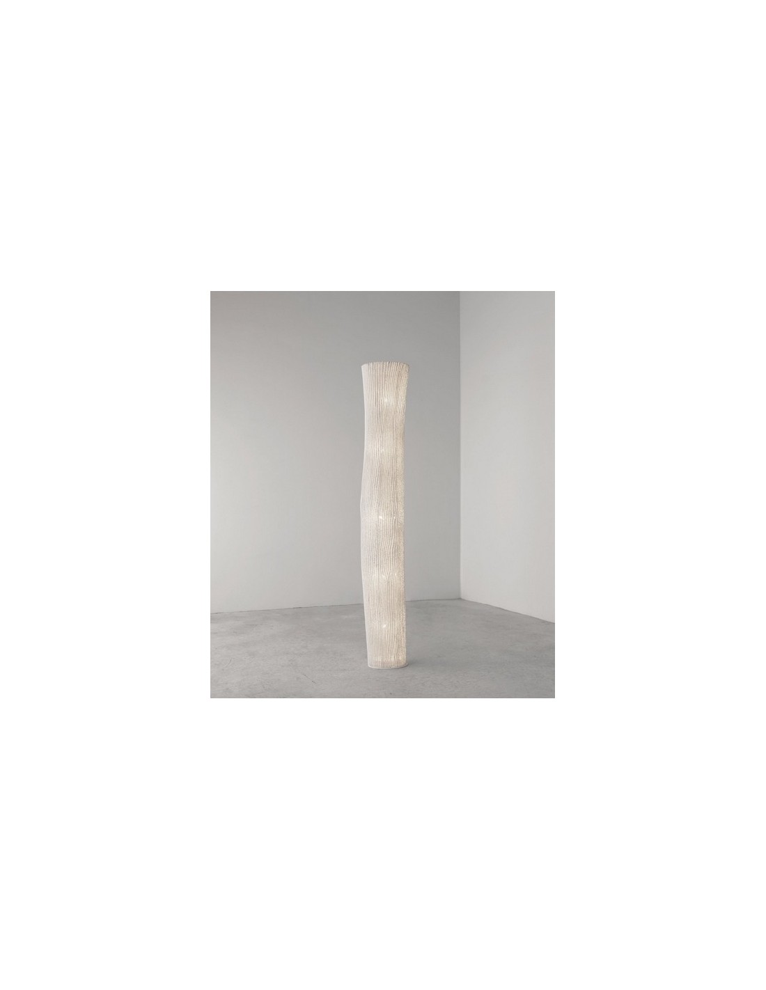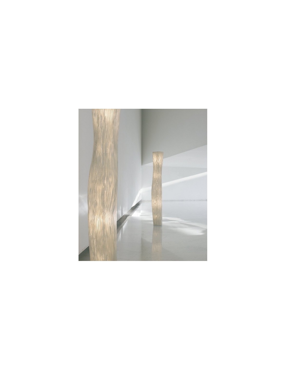 Gea´s light is distributed uniformly all through its structure, creating an enveloping environment. The name of this collection is inspired by the original goddess, the earth’s mother. The stylized lines of its luminaries take the shape of female figures, challenging the verticality thanks to the textured veil of painted stainless-steel mesh that adjusts to the structure by means of a zipper. This floor lamp was awarded with the Good Design Award in 2007. It has a diameter Ø 28cm and a height of 180 cm. Its light source is LED E27 230V Max. 5x12W (not included) and you can choose its finish: white, beige, gray or taupe.
