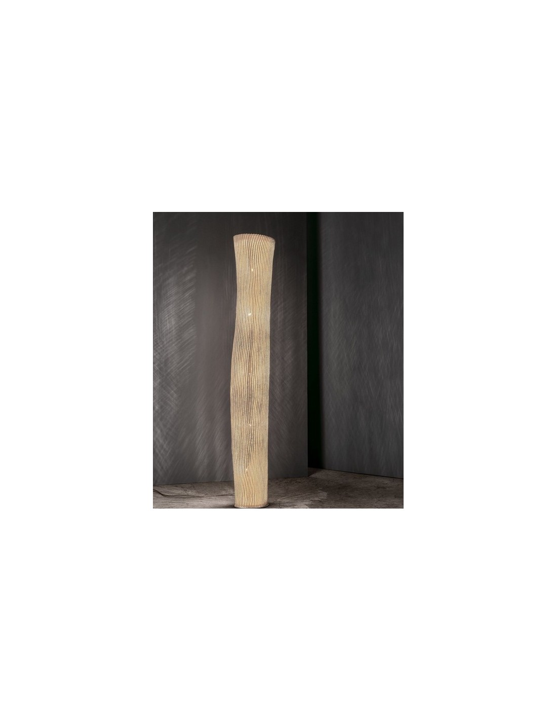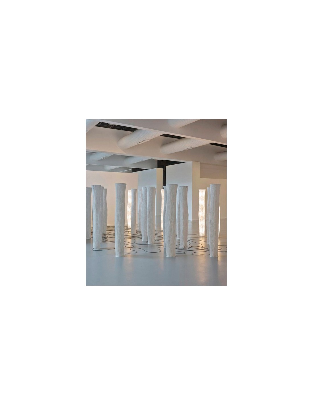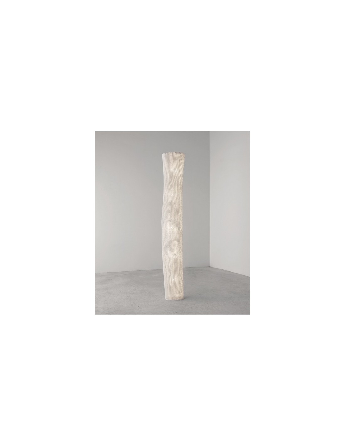 Gea´s light is distributed uniformly all through its structure, creating an enveloping environment. The name of this collection is inspired by the original goddess, the earth’s mother. The stylized lines of its luminaries take the shape of female figures, challenging the verticality thanks to the textured veil of painted stainless-steel mesh that adjusts to the structure by means of a zipper. This floor lamp was awarded with the Good Design Award in 2007. It has a diameter Ø 28cm and a height of 180 cm. Its light source is LED E27 230V Max. 5x12W (not included) and you can choose its finish: white, beige, gray or taupe.
