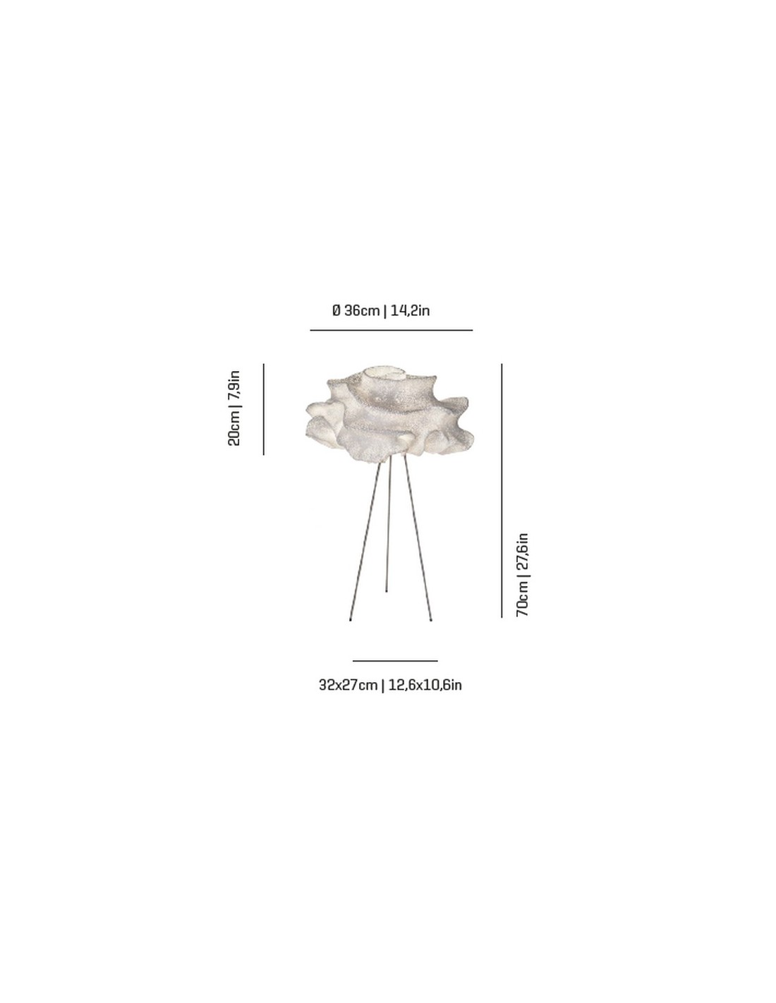 Floor lamp from the Nevo collection, with hand-molded curves simulating the extreme sea malleability with volumes that make each model unique. Its light source is LED E14 - Max. 2x7W. Its diameter is Ø 36 cm and its height 70 cm. The LED light source is E14 - Max. 2x7W (not included).