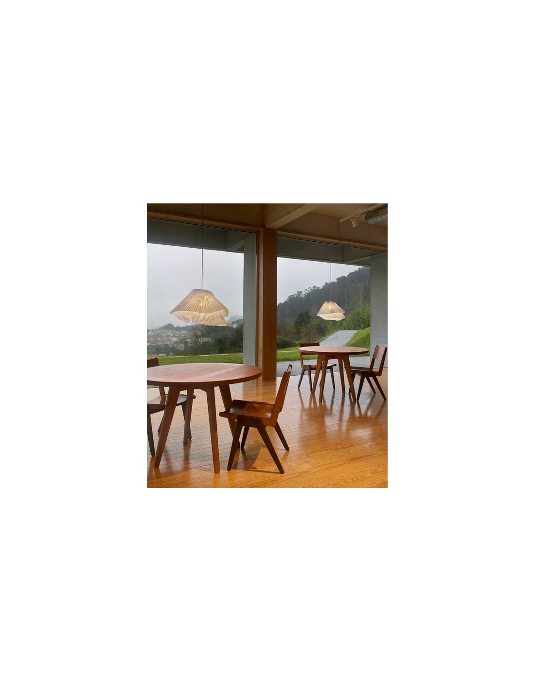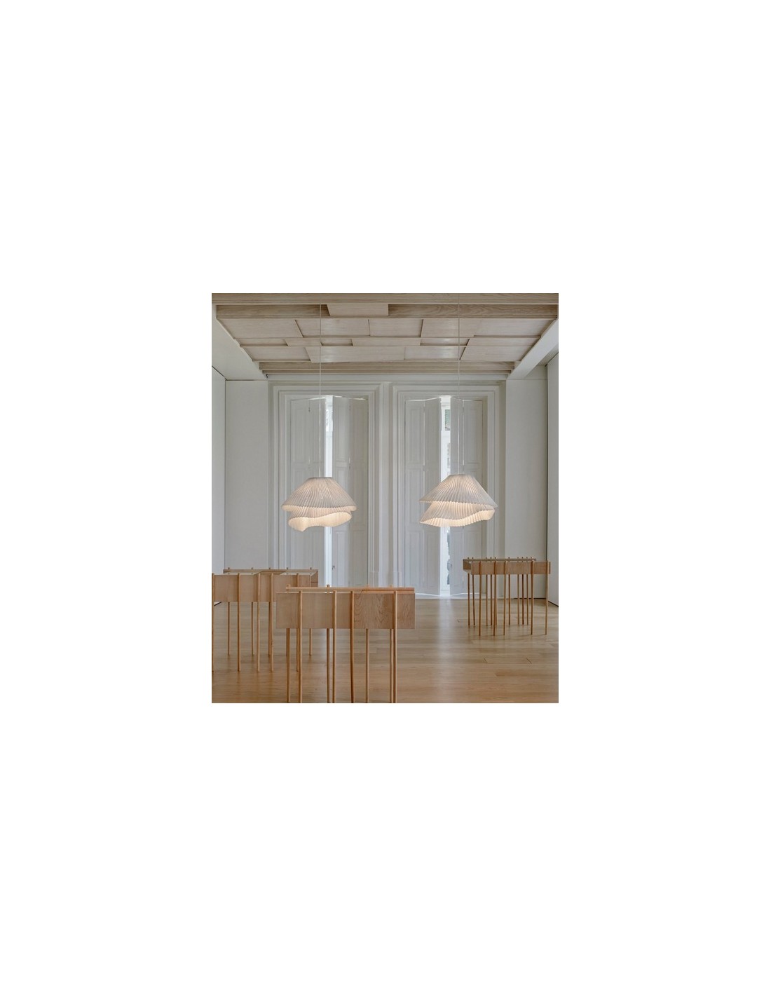 The Tempo collection is composed of a mesh of thin folds that shapes two touching layers with a white, beige, gray or taupe finish. Tempo Vivace will fill your favourite room with light and delicacy. It has measures of 25x45x150cm with a diameter of Ø 45 cm. Its light source can be chosen between LED E27 - Max. 1x12 (not included) or integrated dimmable LED 18.1W 3000K 1776lm.