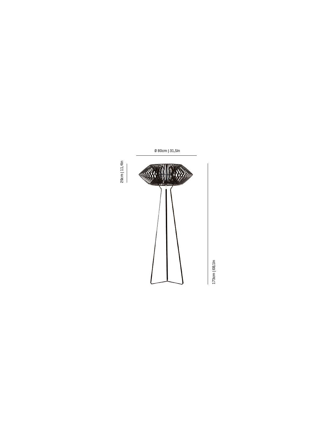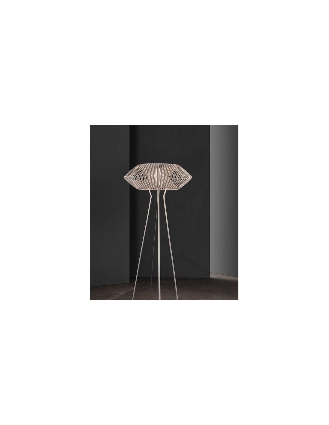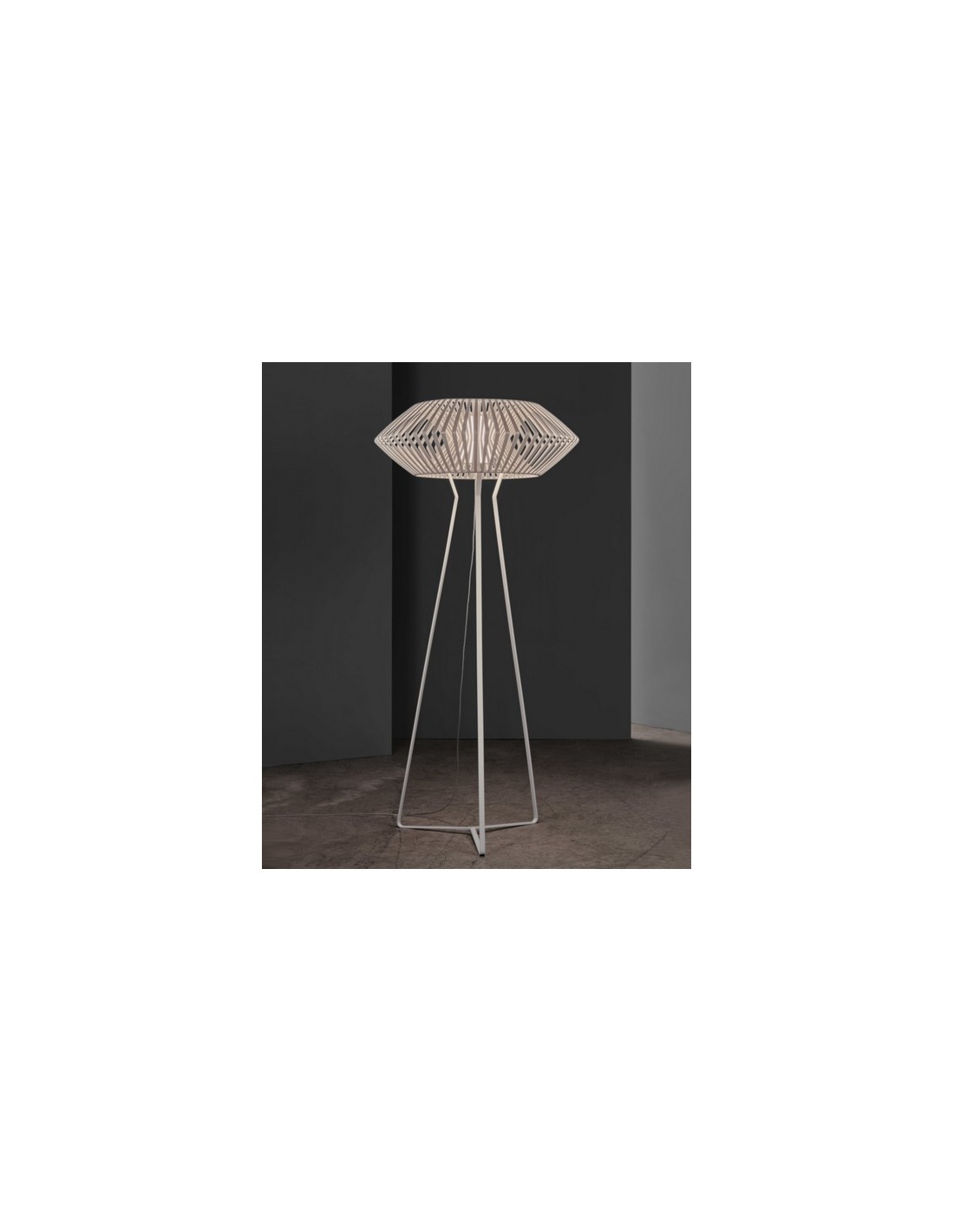Floor lamp designed by Héctor Serrano. Its geometric shape evokes the extraordinary and fantastic. Made of polycarbonate with white or black finish, it measures 29x173 cm and has a diameter of Ø 80 cm. Its light source is E27 LED - Max. 1x12 (not included).