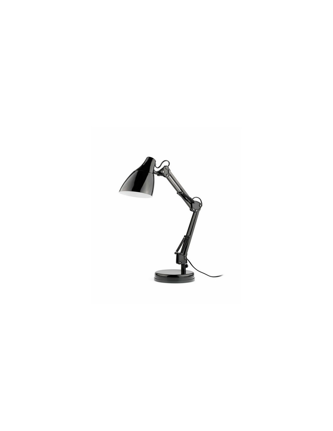 ‘Gru´ is a multi-articulated table lamp made of metal, which allows you to choose between a white or black finish. Recommended by manufacturers for studio lighting, this lamp uses an E-27 11W light source (not included) and has dimensions of 33 cm wide, 15 cm long, 50 cm high and a weight of 1.7 Kg.