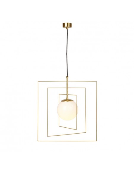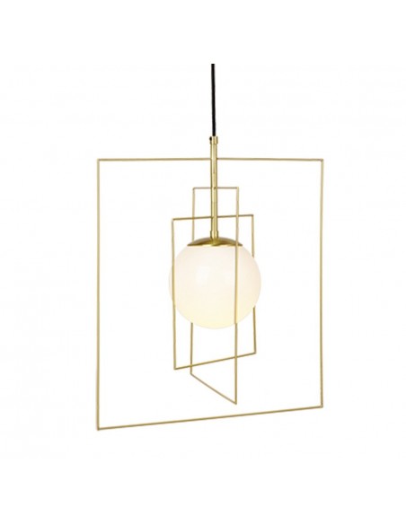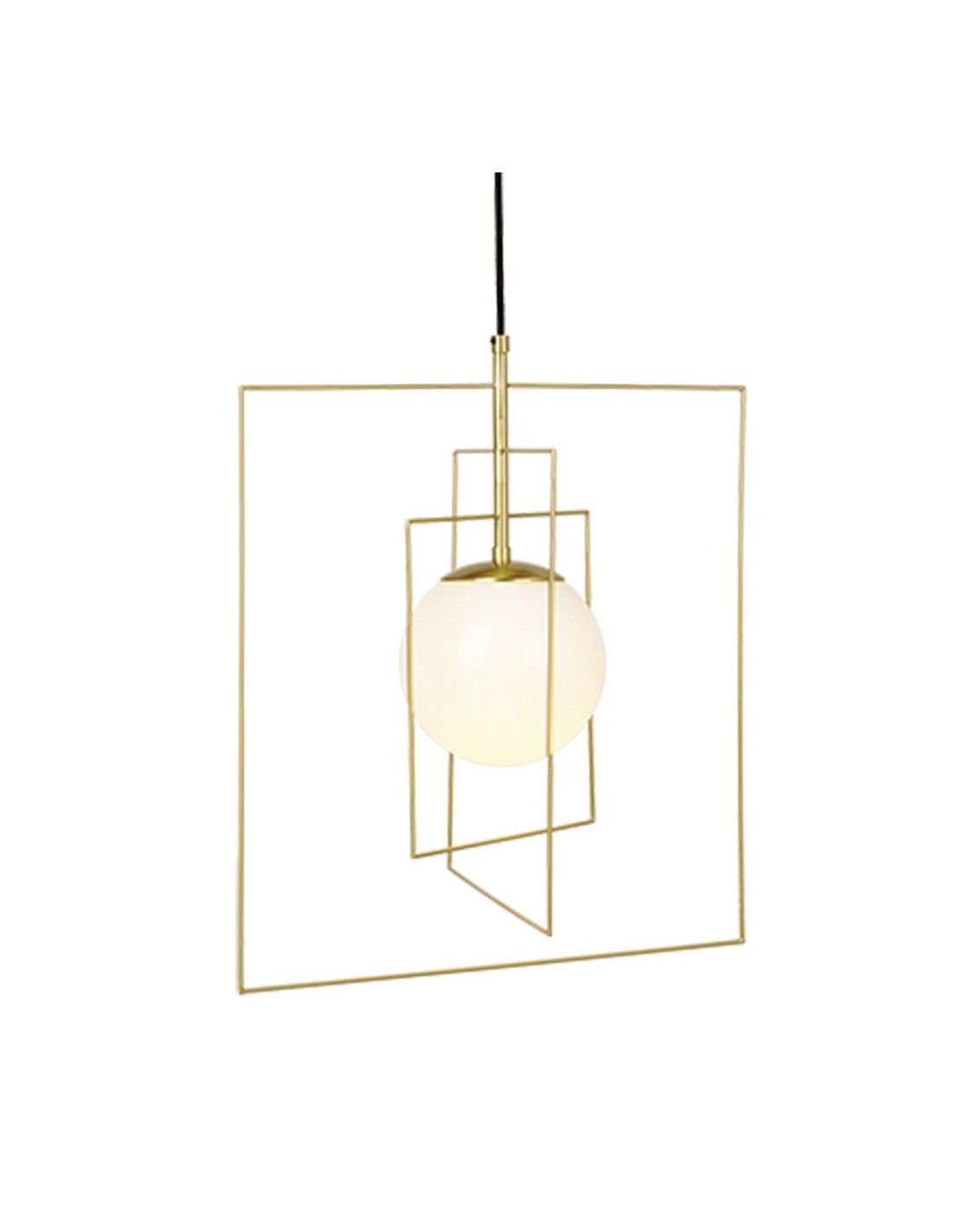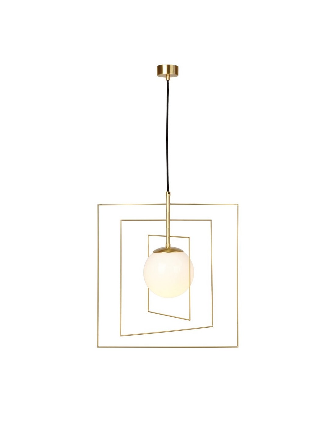 The Wire series consists of lights from the Spanish manufacturer Pedret Lighting. These lights provide a modern look with a touch of design. In them, both intersecting metal rings and square shapes frame a globe of opal glass, with a satin brass finish.