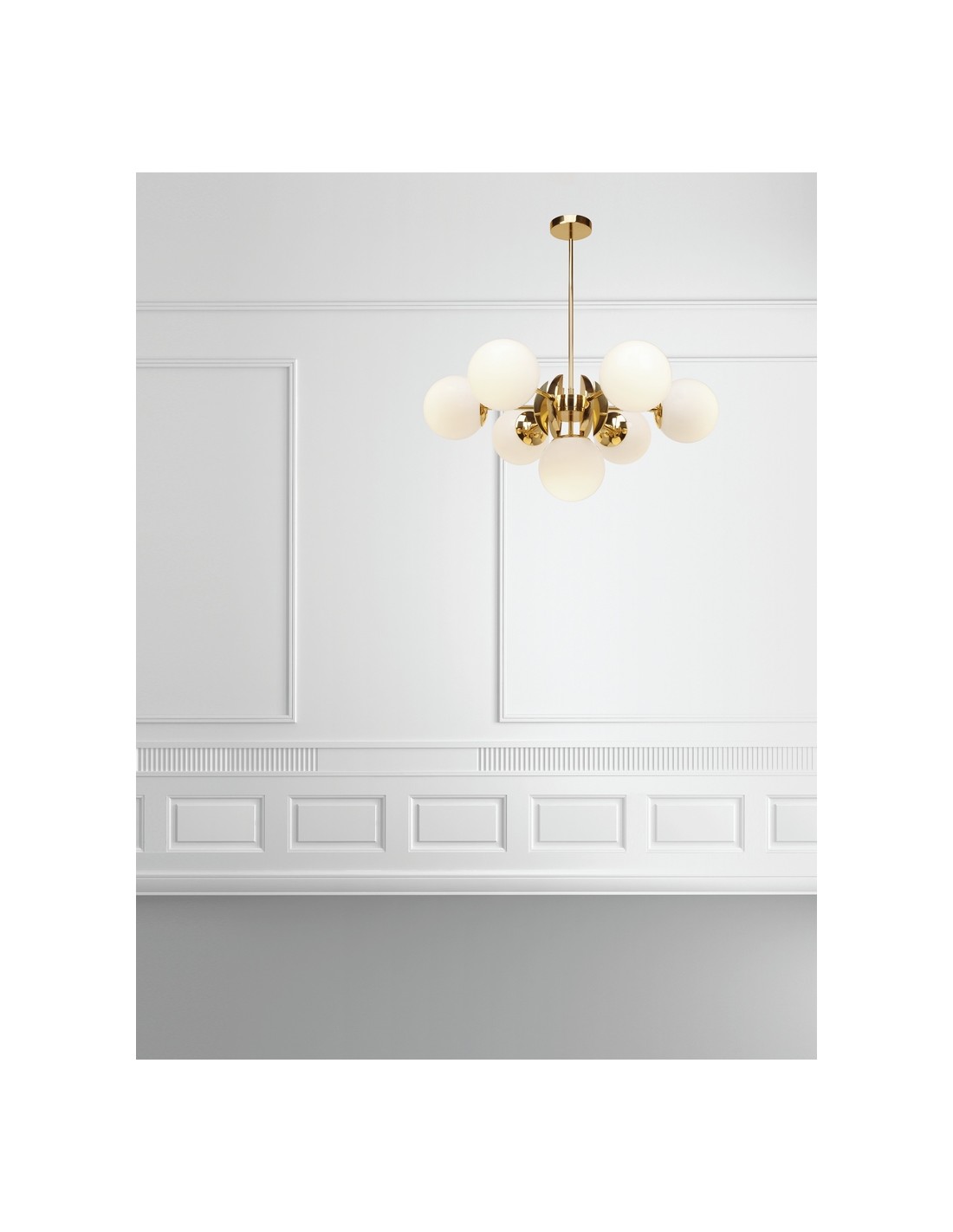 La lámpara Sixty es verdaderamente radiante. Inspirado en los diseños de los años 60 esta esfera que intersecta decoraciones semi-circulares del latón sólido unidas a un pequeño cuerpo de cromo pulido o del latón. ¡Qué manera llamativa de realzar tu comedor, vestíbulo, o dormitorio!
