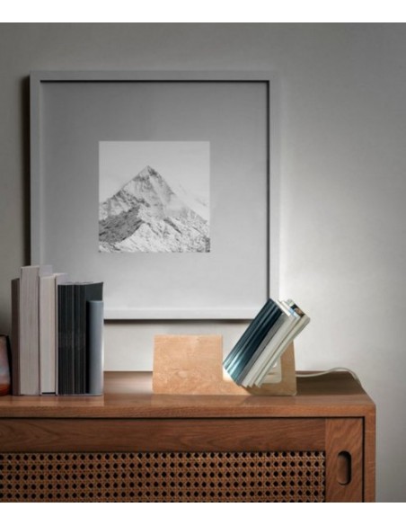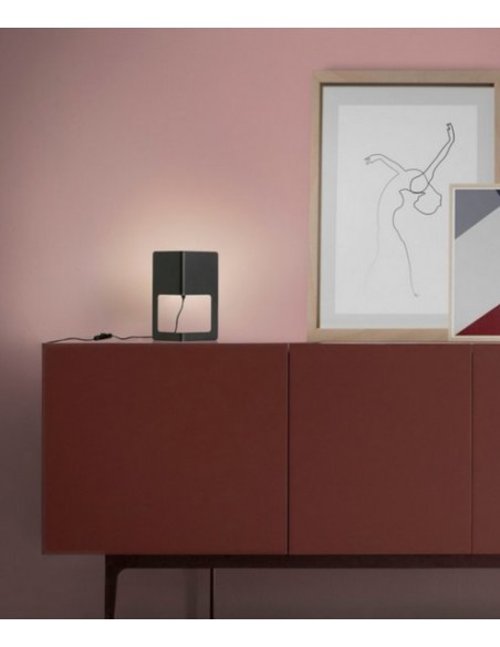 The Minima table lamp is a simple yet highly decorative design, perfect for adding ambient light to living rooms or bedrooms. Its metal structure allows it to be positioned vertically or horizontally, making it adaptable to any space. The lamp's light reflects off the walls, creating a warm and cosy atmosphere.