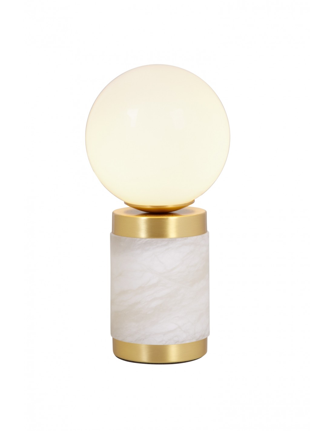 Stones Glass es una lámpara de mesa compuesta por una esfera de vidrio situada sobre una estructura de latón y alabastro. Se trata de un producto muy atractivo visualmente que se puede usar en cualquier lugar del salón y también como lámpara de mesilla de noche o como iluminación de acento en cualquier otro lugar de la casa. La esfera de vidrio se ilumina suavemente, ofreciendo iluminación acogedora y ambiental. Esta lámpara fabricada por Pedret Lighting mide 29 cm de alto y 14 cm de diámetro. Dispone de un portalámparas G9 en el que se recomiendan bombillas LED 10W (no vienen incluidas).