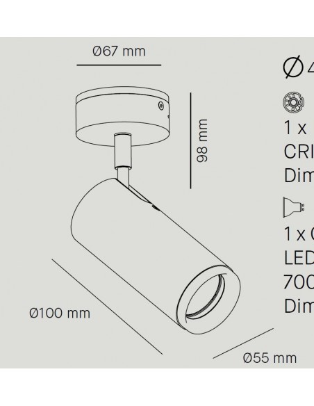 Spotlight made of steel that fits perfectly both the wall and the ceiling and offers a variety of combinations and uses. With the possibility of acquiring in white or black lacquered, it also presents the opportunity to choose the light source, either LED 7W 665lm 2700K (which is integrated) or with a lamp holder GU10 8W 700lm 2700K (not included with the product), where both of them will emit warm light. Useful as a living room lamp or bedroom lamp for reading or to illuminate exhibitors and shop windows, this model of the ´Haul´ collection has a diameter of 5.5 cm and a height of 19.8 cm. It can be oriented in the desired direction.