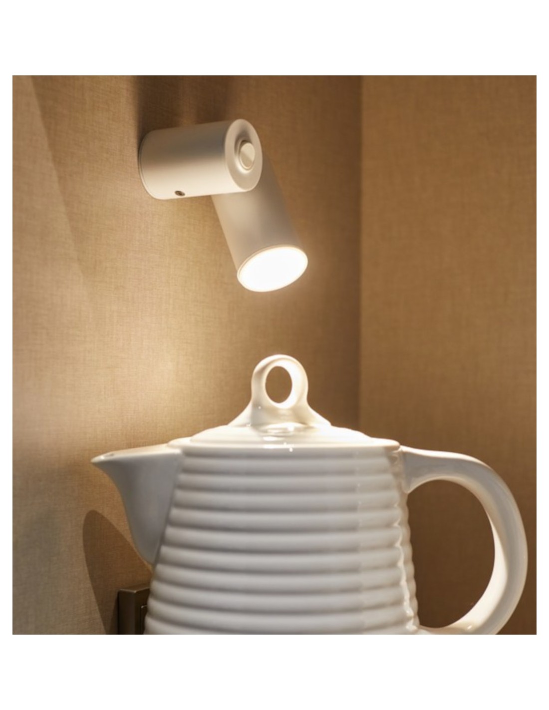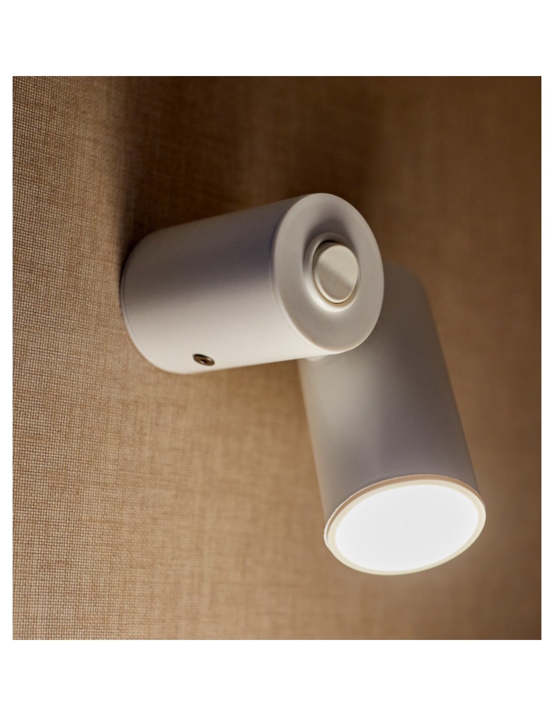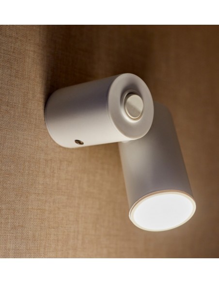 It is a discrete wall sconce formed by two cylinders, one that acts as an anchor to the wall and also has the switch on the top and another one that is responsible for emitting the light in a focal way and can be oriented in the desired direction. It is composed of extruded steel in most of the structure, while it also has a reflector made of polycarbonate. Highly recommended as a support lamp in a bedroom for use as a reading lamp or any other use, it has a diameter of 4 cm and a total height of 9.1 cm. The light source is LED 5W 500lm 2700K, which emits warm light and is integrated into this lighting article.